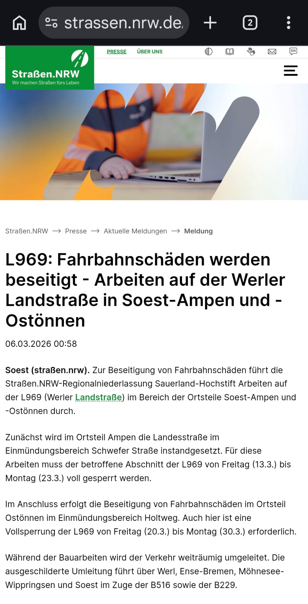 ❗❗❗Wichtige Verkehrsinfo❗❗❗ Veröffentlicht am 16. März 2026 von sisi ❗❗❗Achtung❗❗❗ Zufahrt nach Ostönnen aus östlicher Richtung zur Zeit nicht durch Ampen möglich! Das wird wohl auch am Samstag zum WBO-Turnier noch so sein und im schlimmsten Fall könnte die ehem. B1 dann auch in Ostönnen schon gesperrt sein.