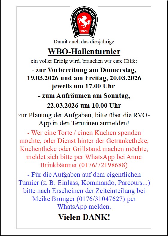 Die Ausschreibung für unser WBO-Hallenturnier